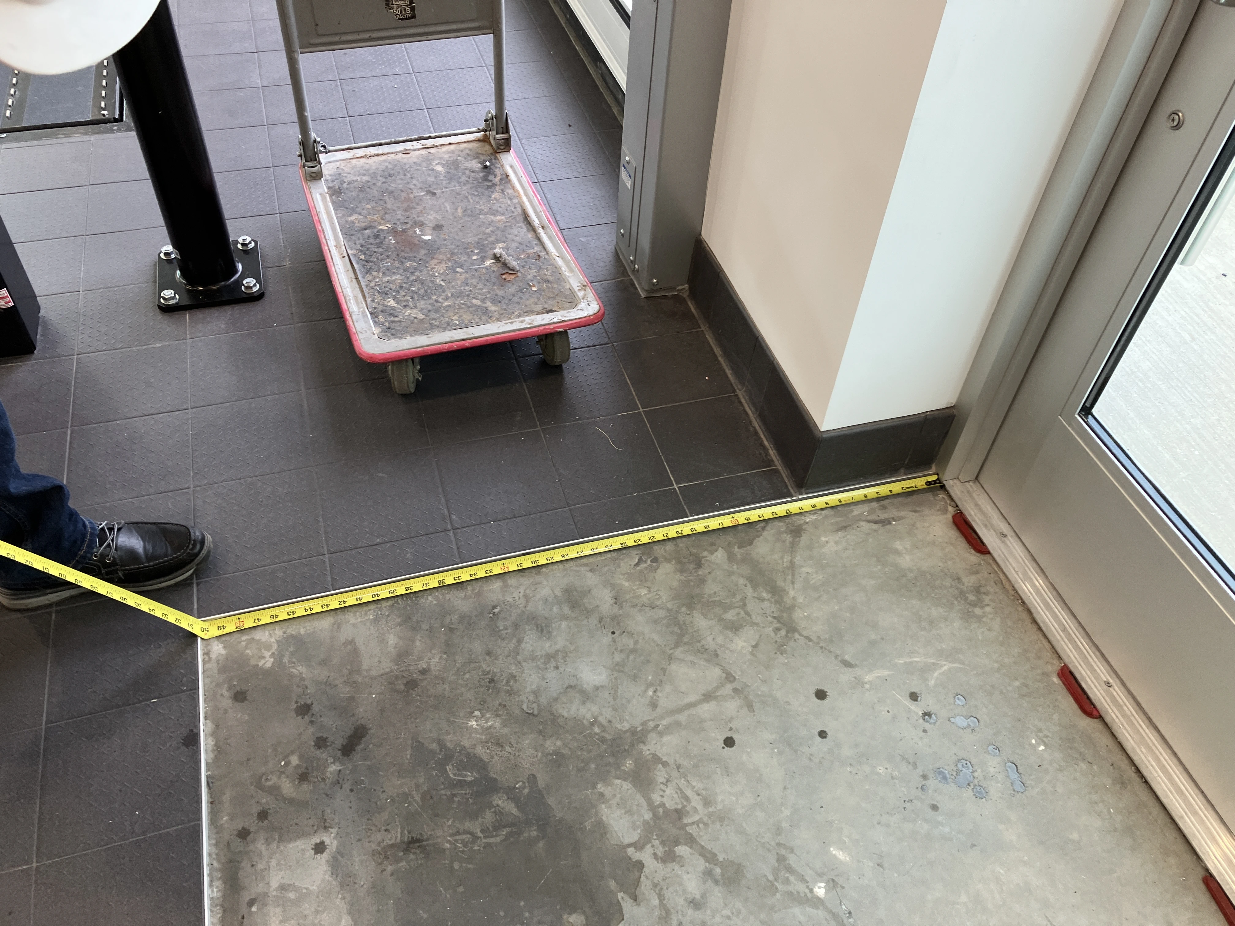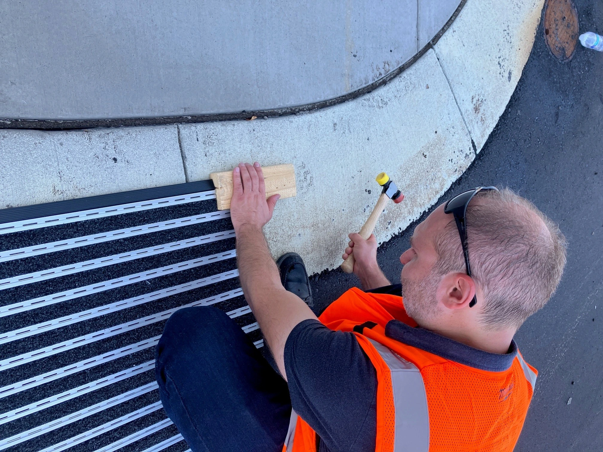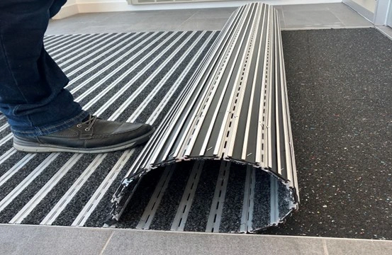 Once the onsite modifications were complete, the team rolled the mat securely into place ensuring that it lay flat beneath the automatic doors.