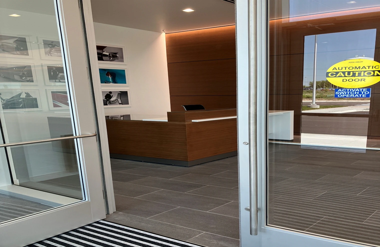 *Note: Auto dealerships often feature different vehicles in their showroom, if vehicles are needed indoors, they should enter via the service garage doors. Or the entrance mats should be removed, and wooden planks should be placed over the recess to prevent the entrance mats from getting damaged. Driving a car over the aluminum entrance mats will render the mat ineffective and could create a tripping hazard for the employees and customers.