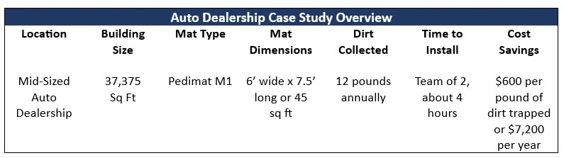 1 entrance matting system + 37,375 sq ft of space = 12 pounds of dirt retained each year.